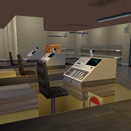 A small grocery store. Features a slippery freezer storage room.