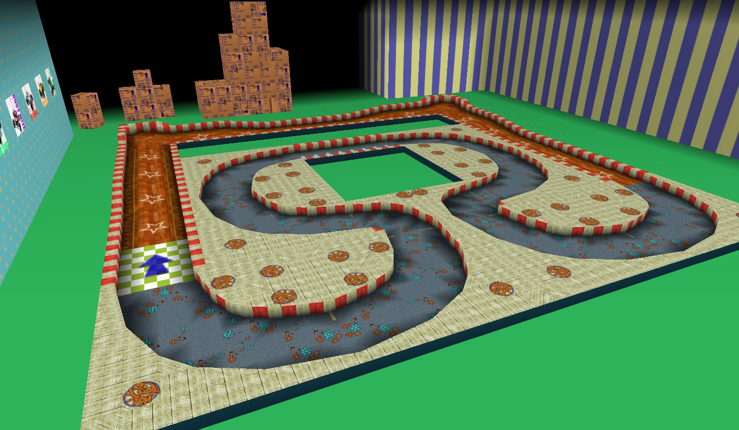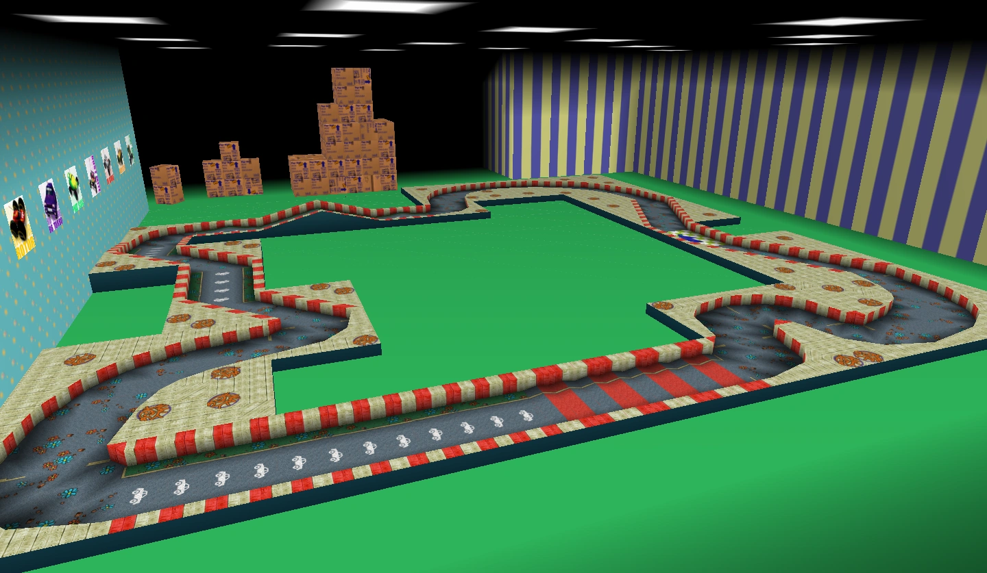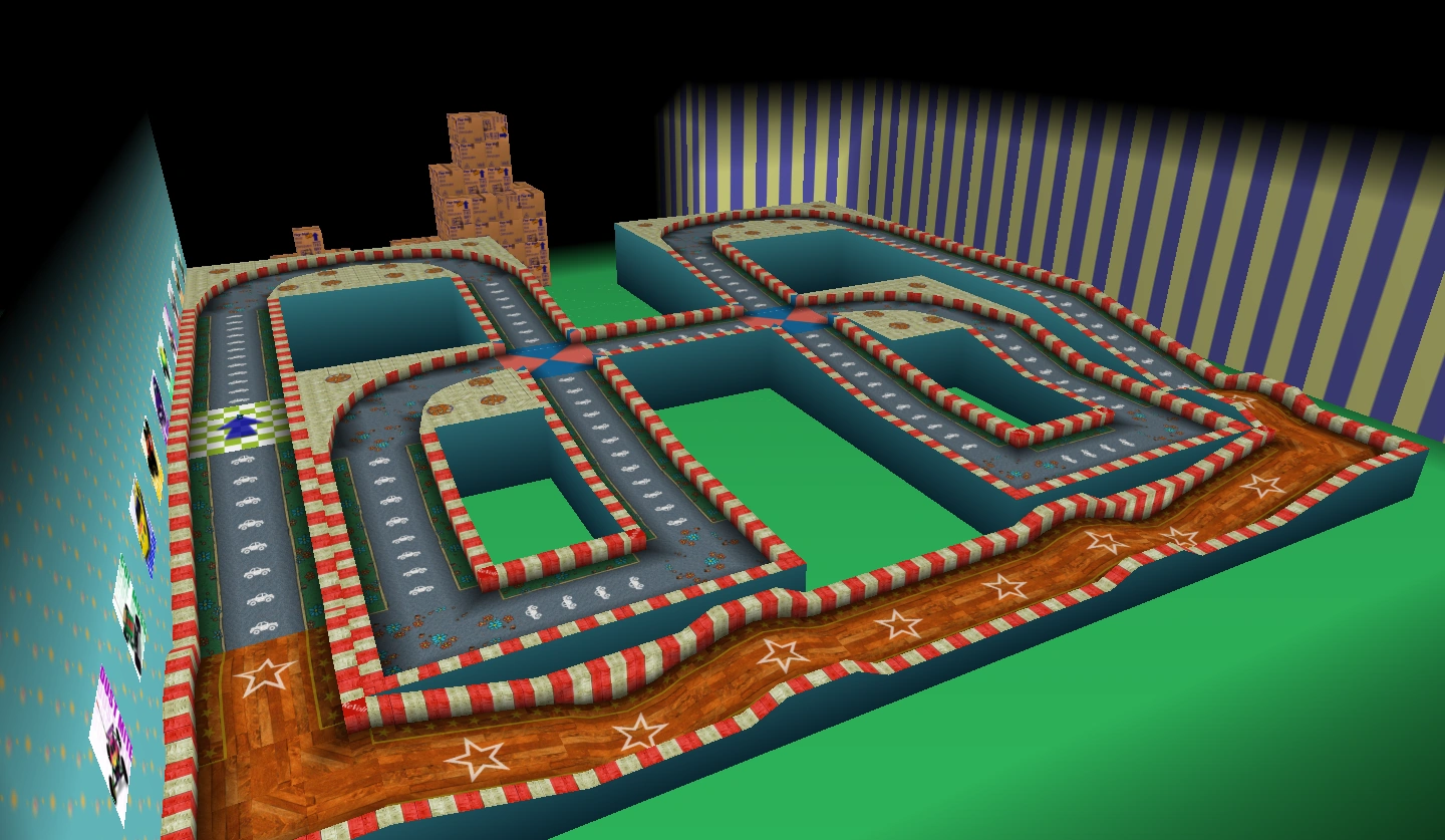 A racing track based on Neighborhood Battle. Players race around the perimeter of the track.