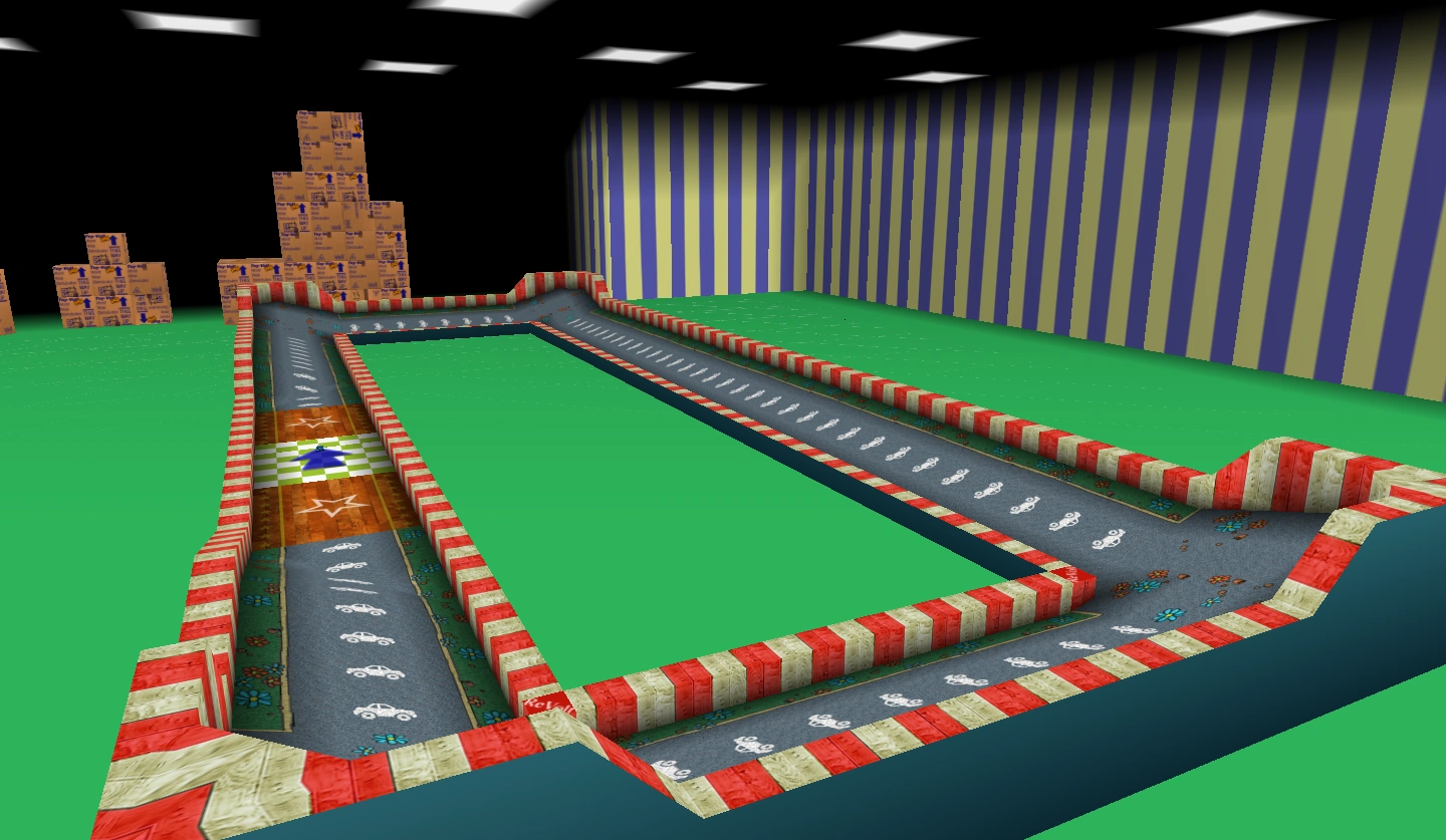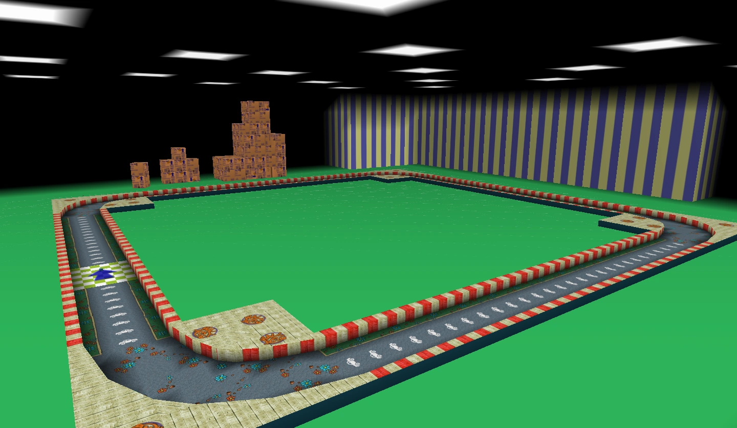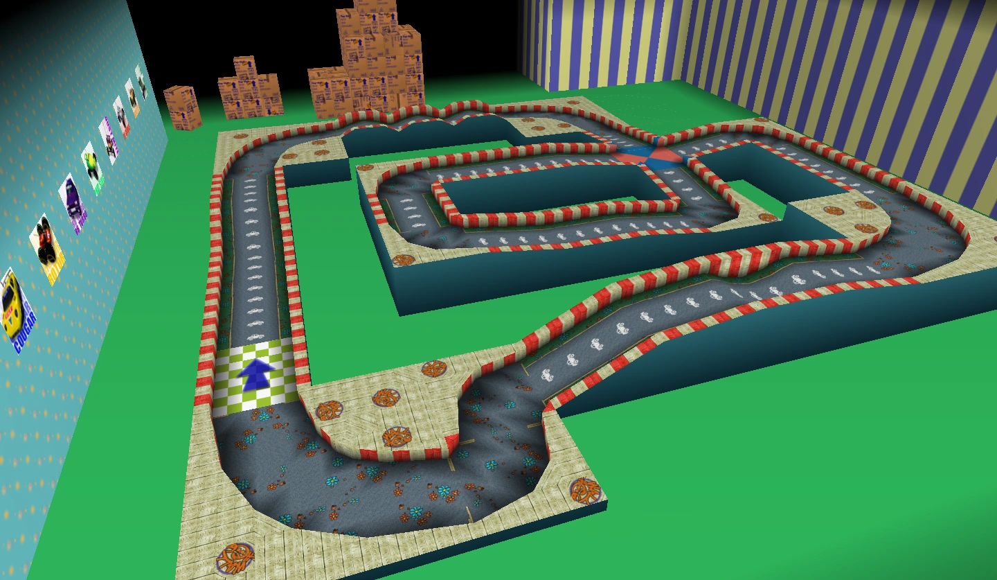 A racing track based on Neighborhood Battle. Players race around the perimeter of the track.