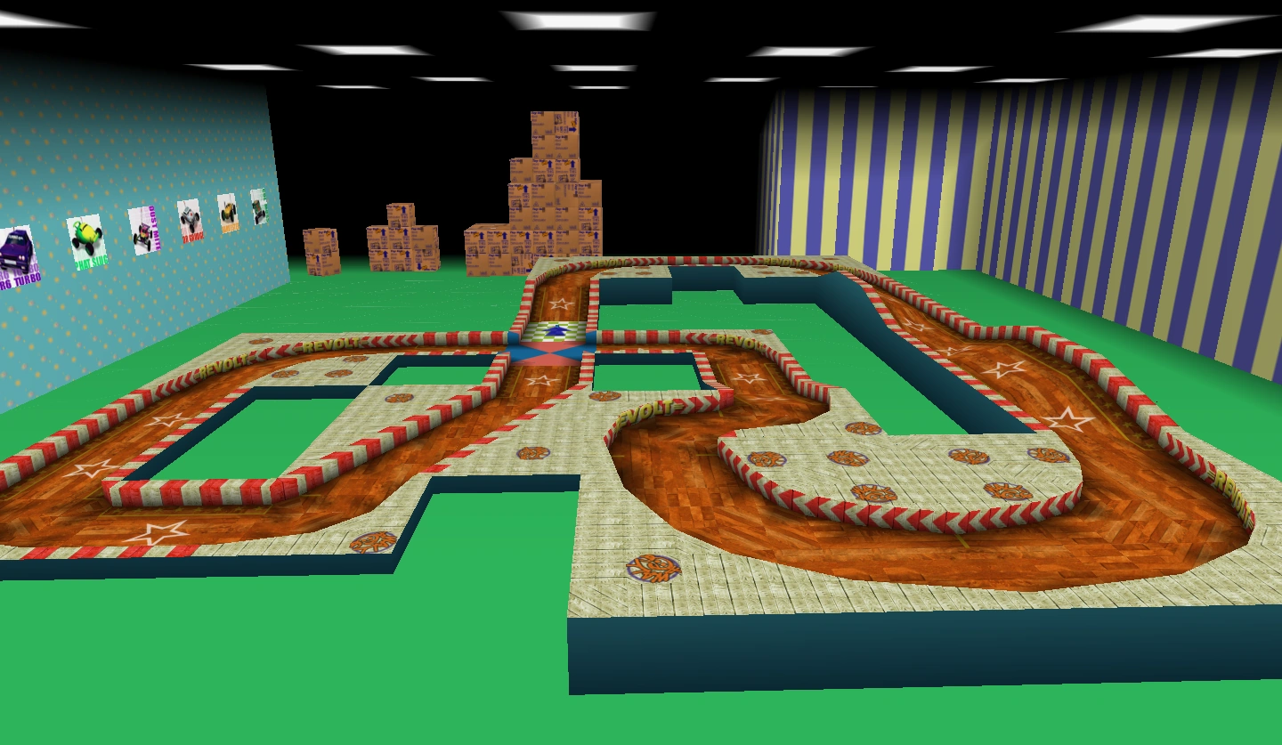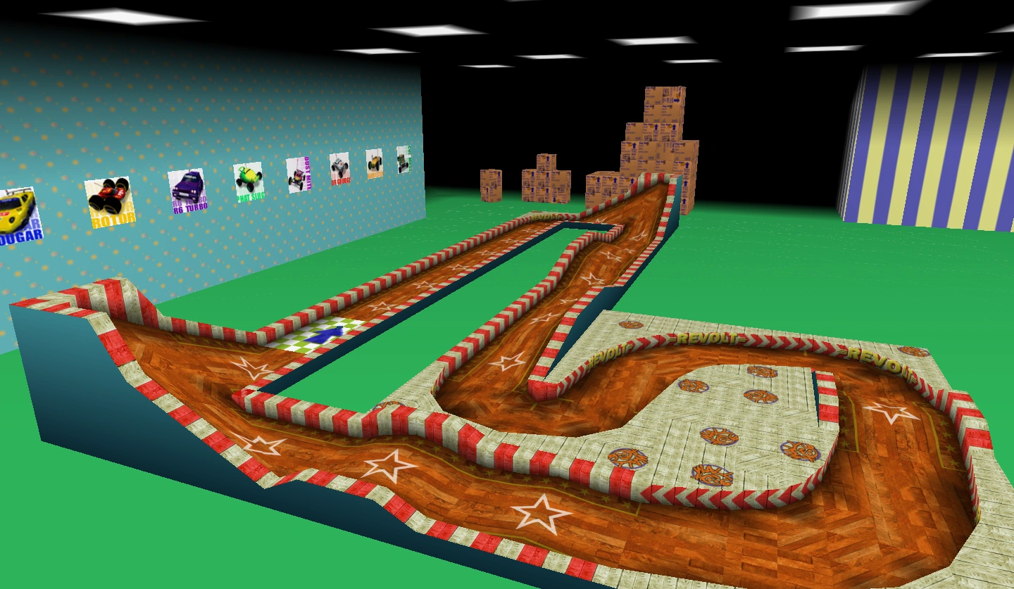 There are some tracks which are considered Special Tracks. These tracks are used for different purposes other than racing. Unlike Standard Tracks, they are not available in the conventional Playmodes of Re-Volt.