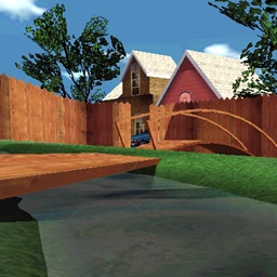 A smaller suburban town with an emphasis of racing down house interiors and backyards.