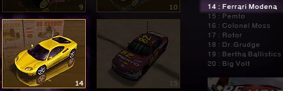 - ↑ Joe's answer to Stefano about Ferrari Modena: "I made both the Modena and the Pemto car...I think there was an idea to try to tie in a Ferrari car because we were going to be working on a Ferrari game after ReVolt. Sadly, that car never got released, probably because it would have cost a lot to get the licence."